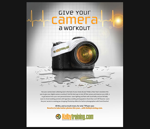 To illustrate the importance of training yourself to become a better photographer, we came up with the concept of "working out" your camera. This was rolled out as a New Year's campaign, as a play on the resolutions for fitness common at that time of year.